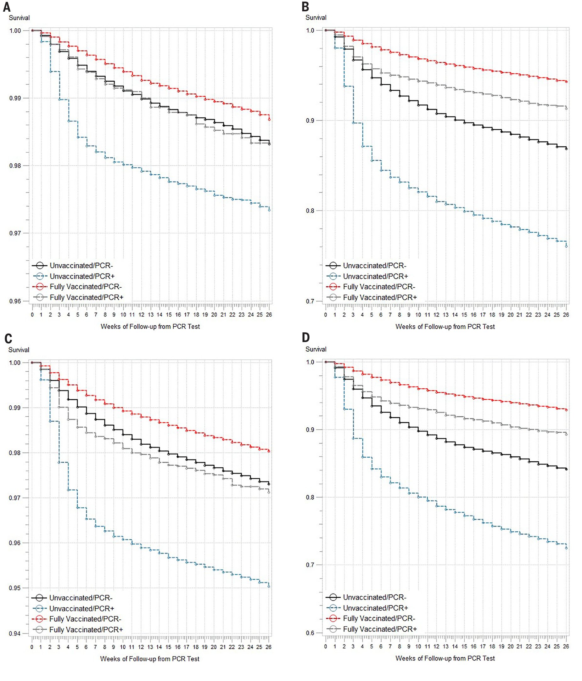 Итак, результаты статистических исследований. 4 возрастных группы (поэтому 4 графика). Графики показывают выживаемость.